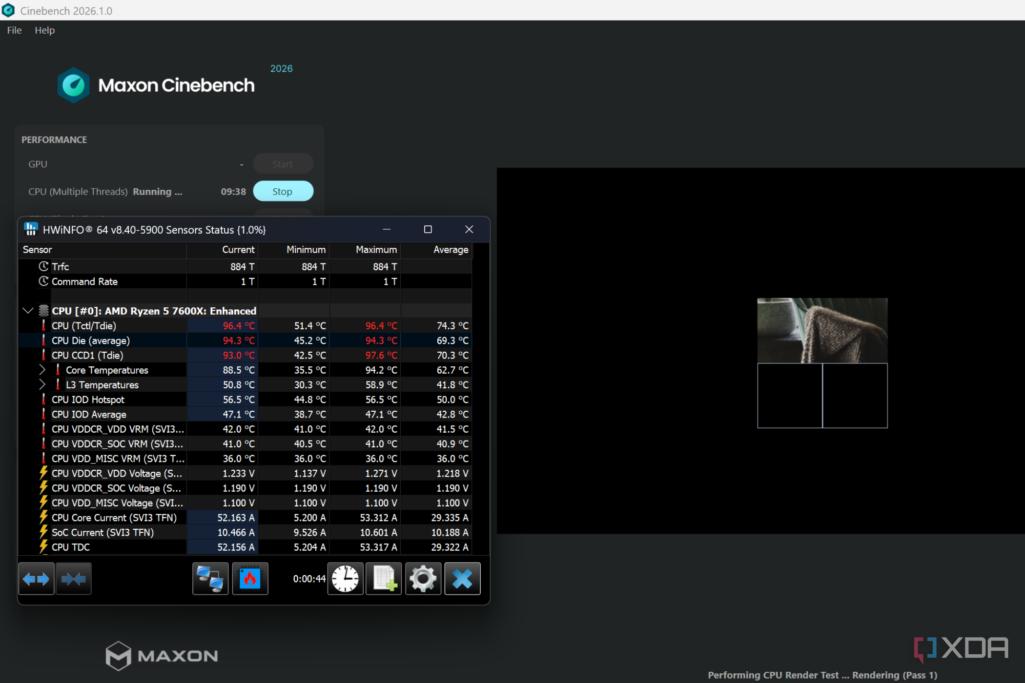 If you’re wondering if it’s time to swap out your CPU cooler, you can know for certain within a matter of minutes. Just run Cinebench for ten minutes straight while watching temperatures and clock speeds of your CPU in HWiNFO. Pay attention to the sustained behavior, and not the peak spikes. If your CPU climbs near 80°C or 90°C, and clock speeds start dropping mid-test, that’s thermal throttling. Some modern CPUs are built to go higher up in temperature, even near the 100-degree line, but clock speeds dropping are the giveaway you’d be looking for to check for thermal throttling.