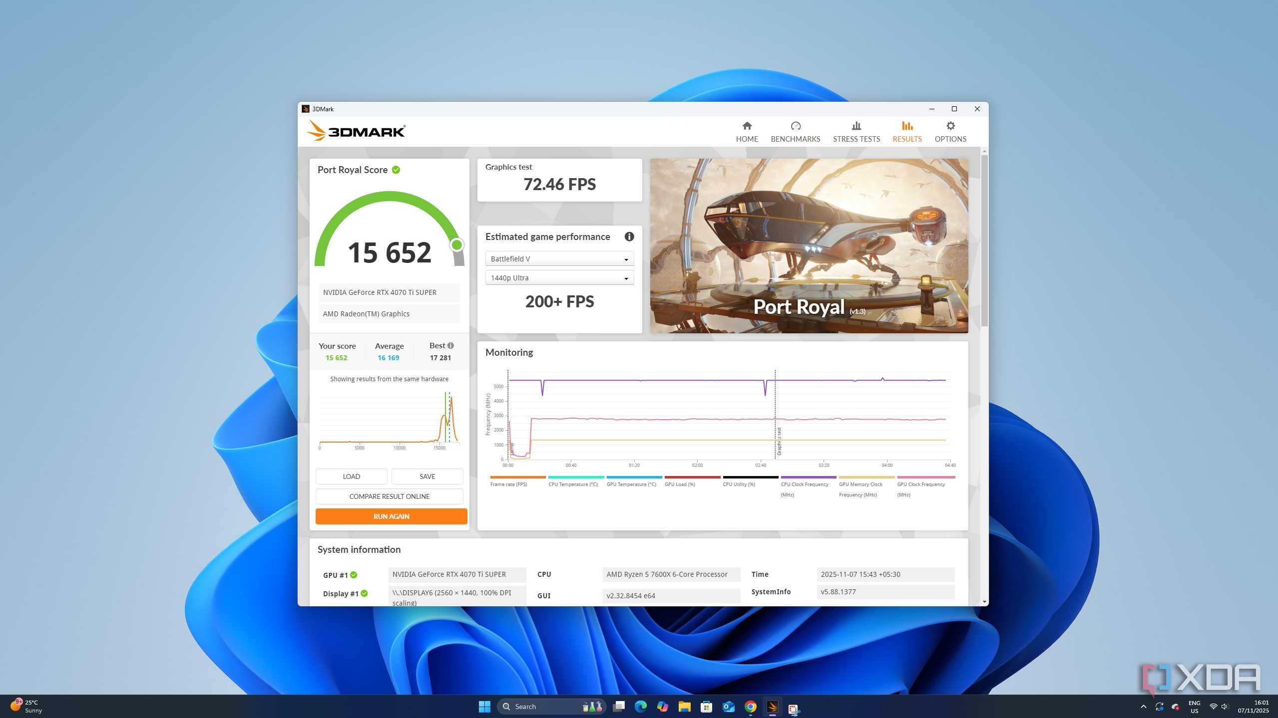 GPU bottlenecks are pretty common, and the term is thrown around quite a lot. To start, max out your resolution in any AAA title you play, and then push graphics presets to Ultra. If there’s room for ray tracing, enable it. Then, either run a demanding scene in-game, or run the benchmark if you’ve picked a game that comes with its own benchmark, like Black Myth: Wukong or Cyberpunk 2077. Either that, or fire up 3DMark’s Time Spy.