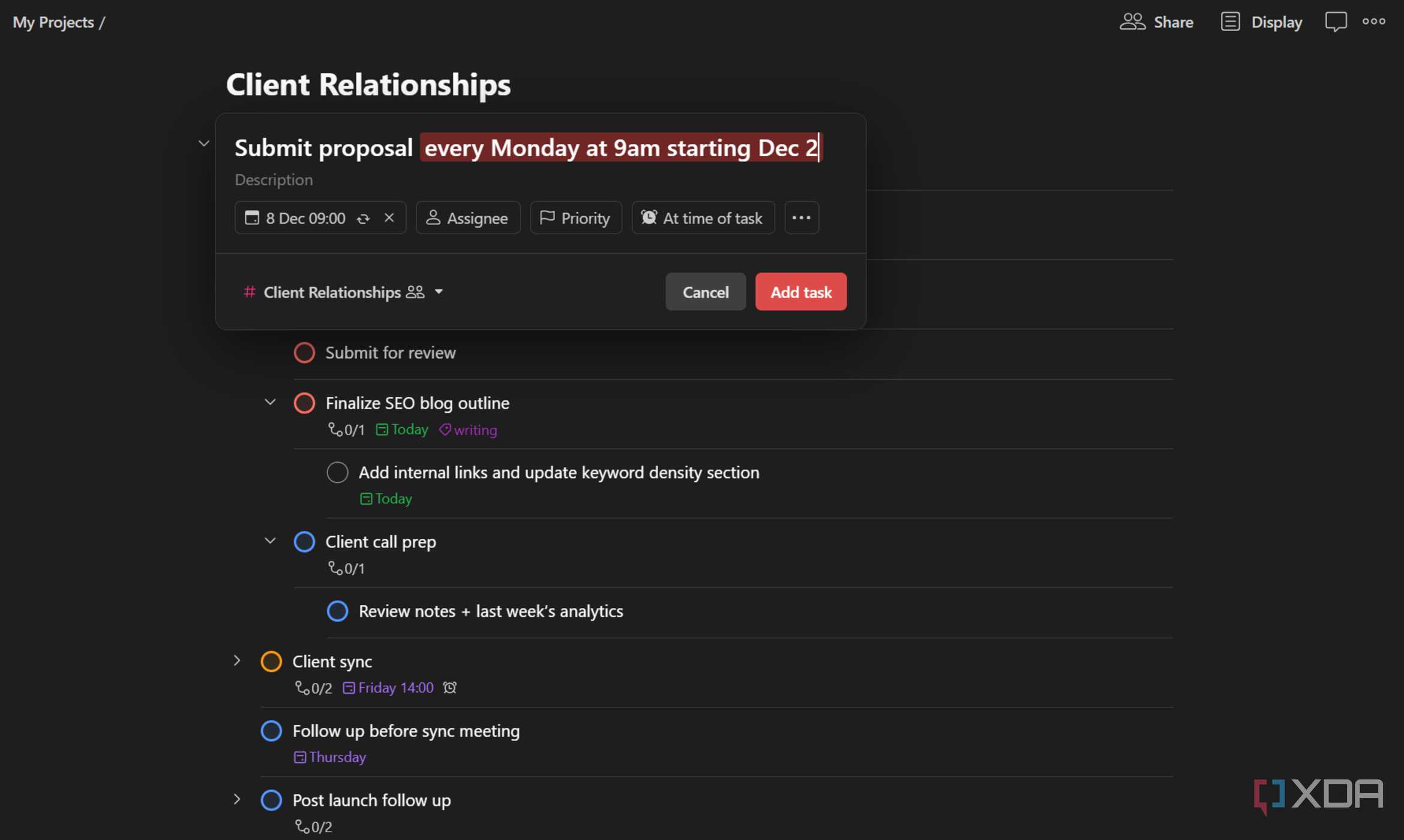 Logseq’s daily pages are deceptively simple: every day gets a blank page with today’s date. That’s it. No projects to configure, no recurring task templates to set up, no reminder notifications to fine-tune. I started using them as a dumping ground for meeting notes, random thoughts, and things I needed to do. I’d type “TODO Fix bug in homepage” or “TODO Email Sarah about Q2 budget” inline with everything else. The magic happened when I realized Logseq automatically aggregates all TODO items across every daily page into a single queryable view.