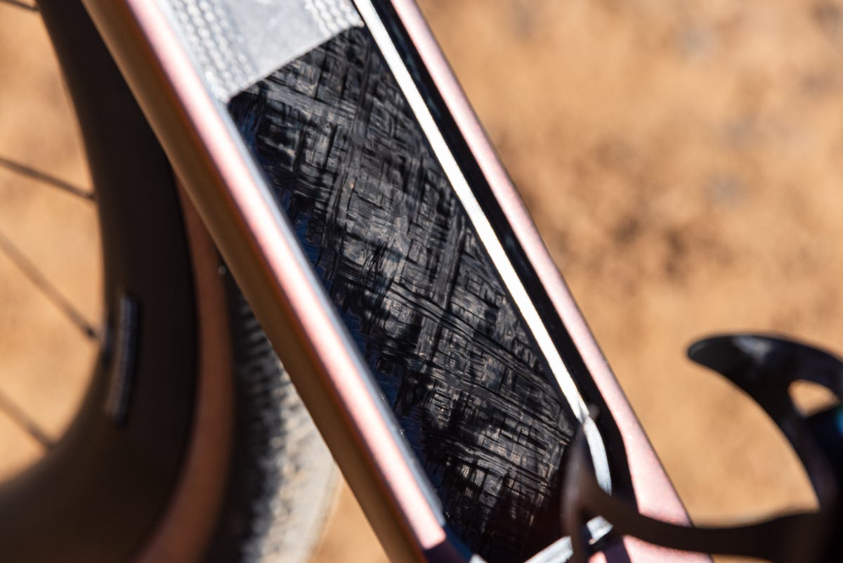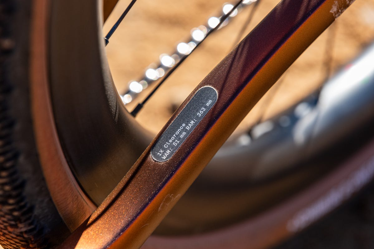 The frame can fit up to 51 mm tires (up from 700×46 mm max in the first generation), with 1x setups and 48 mm with a front derailleur. The aerodynamics of the head tube, fork, and downtube have been reshaped to accommodate wider tires, but, like the previous generation, the downtube swells to a massive 75 mm-wide truncated airfoil to shield the water bottles.